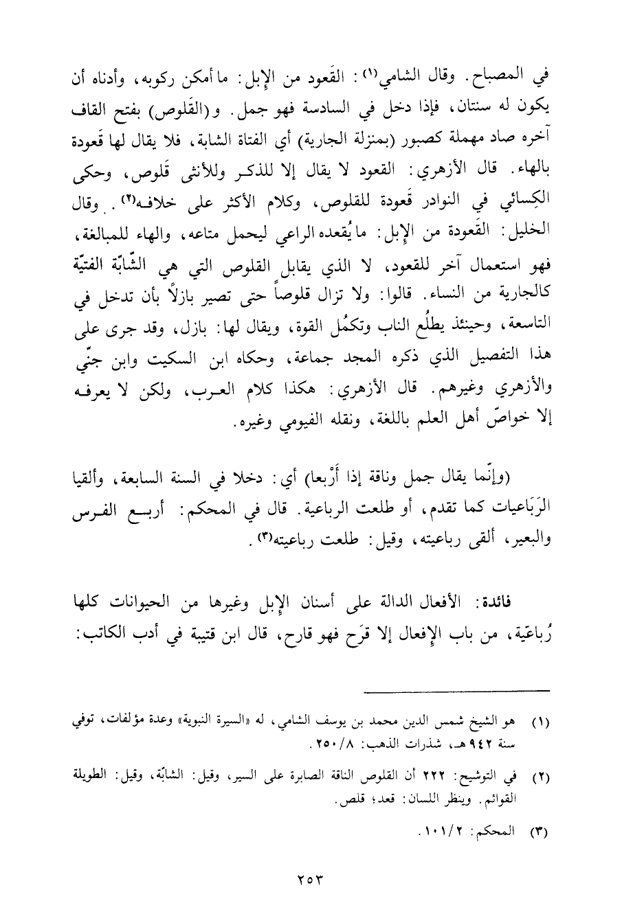 فائدة: الأفعال الدالة على أسنان الإبل وغيرها من الحيوانات كلها رباعية, من باب الإفعال إلا قرح فهو قارح, قال ابن قتيبة في أدب الكاتب: