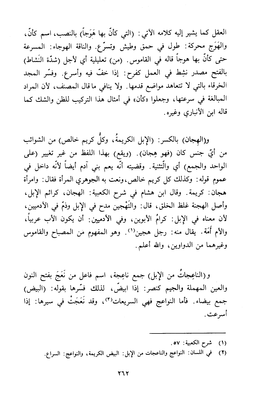 و(الناعجات من الإبل) جمع ناعجة, اسم فاعل من نعج بفتح النون والعين المهملة والجيم كنصر: إذا ابيض, لذلك فسرها بقوله: (البيض) جمع بيضاء. فأما النوةاعج فهي السريعات, وقد نعجت في سيرها: إذا أسرعت.