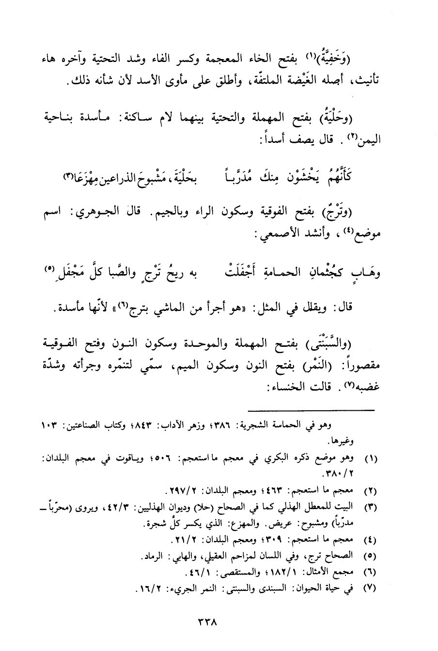 (وخفية) بفتح الخاء المعجمة وكسر الفاء وشد التحتية وآخره هاء تأنيث, أصله الغيضة المتفة, وأطلق على مأوى الأسد لأن شأنه ذلك.
