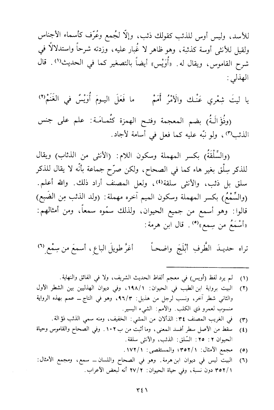 للأسد, وليس أوس للذئب كقولك ذبب, وإلا لجمع وعرف كأسماء الأجناس ولقيل للأنثى أوسة كذئبة, وهو ظاهر لا غبار عليه, وزدته شرحًا واستدلالًا في شرح القاموس, ويقال له. «أويس» أيضًا بالتصغير كما في الحديث. قال الهذلي: