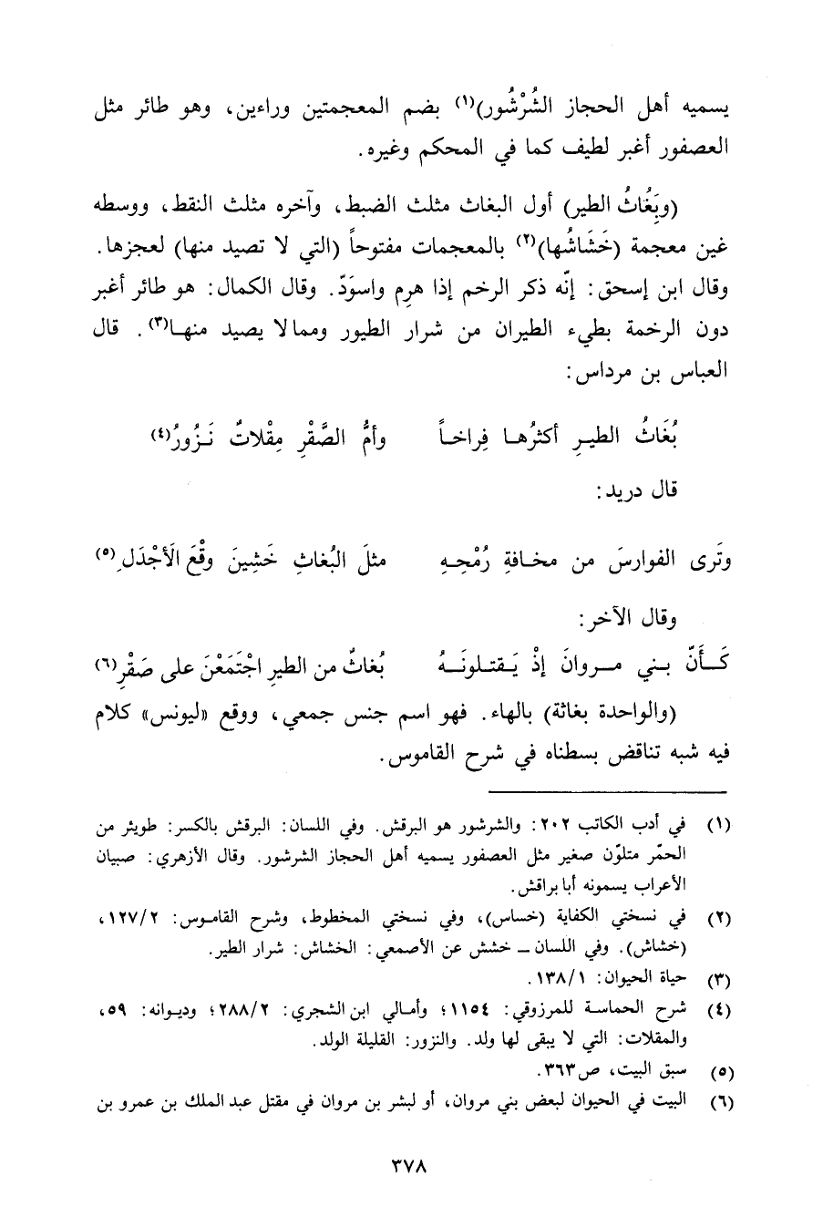 يسميه أهل الحجاز الشرشور) بضم المعجمتين وراءين, وهو طائر مثل العصفور أغبر لطيف كما في المحكم وغيره.