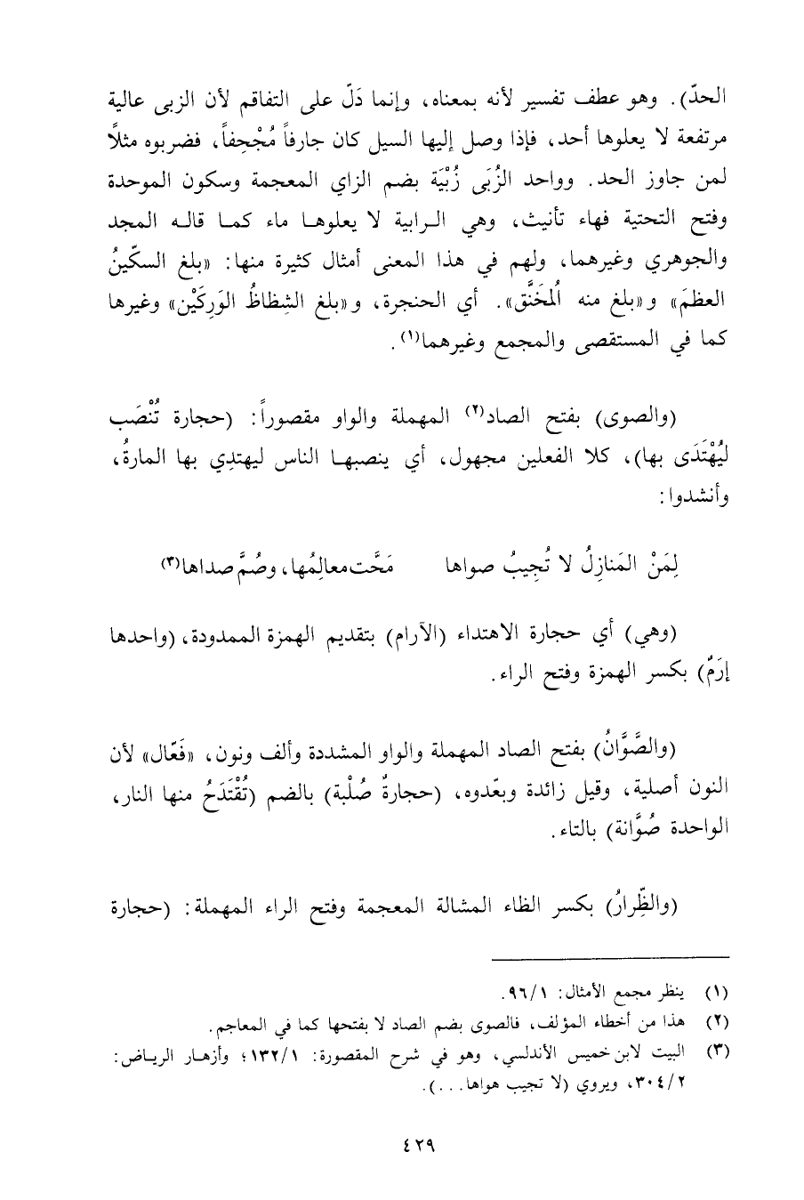 (والصوى) بفتح الصاد المهملة والواو مقصورًا: (حجارة تنصب ليهتدى بها) , كلا الفعلين مجهول, أي ينصبها الناس ليهتدي بها المارة, وأنشدوا: