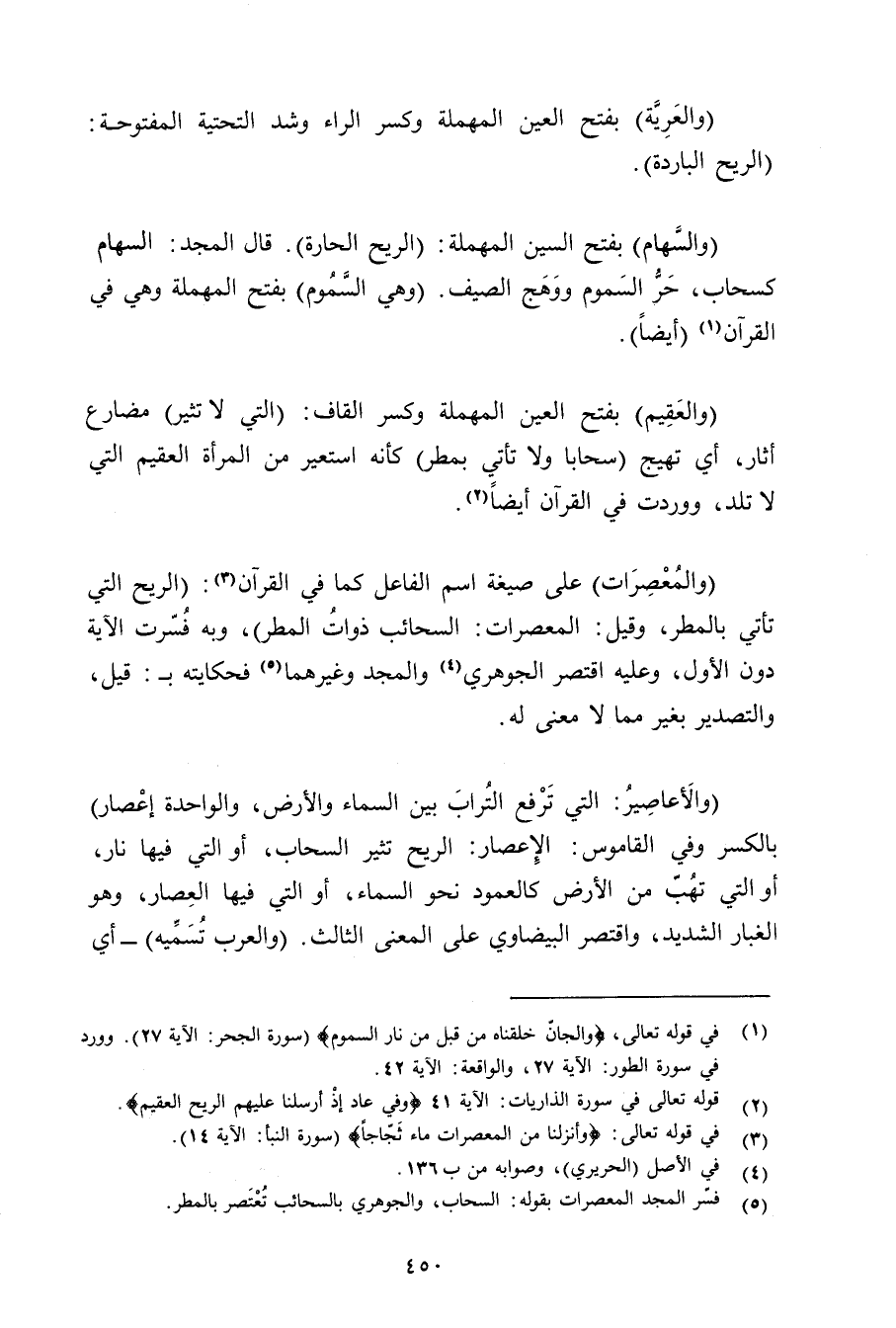 (والمعصرات) على صيغة اسم الفاعل كما في القرآن: (الريح التي تأتي بالمطر, وقيل: المعصرات: السحائب ذوات المطر) , وبه فسرت الآية دون الأول, وعليه اقتصر الجوهري والمجد وغيرهما فحكاته بـ: قيل, والتصدير بغير مما لا معنى له.