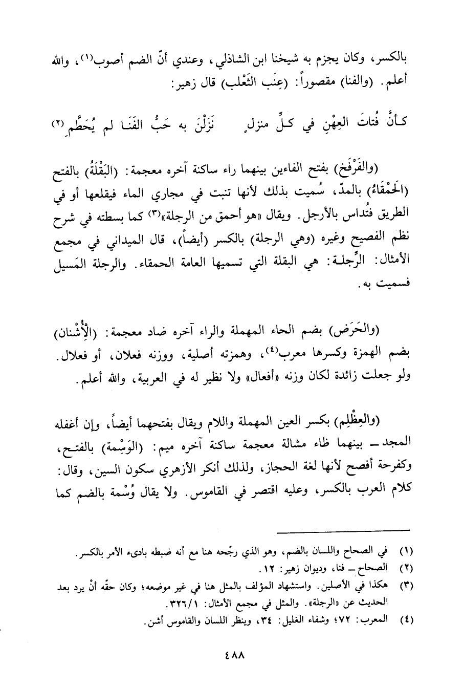 (والحرض) بضم الحاء المهملة والراء آخره ضاد معجمة: (الأشنان) بضم الهمزة وكسرها معرب, وهمزته أصلية, ووزنه فعلان, أو فعلال. ولو جعلت زائدة لكان وزنه «أفعال» ولا نظير له في العربية, والله أعلم.