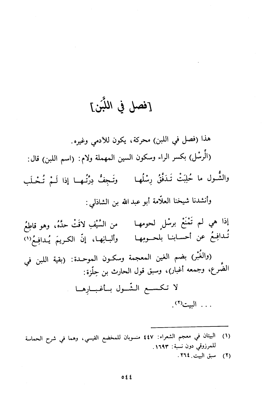 هذا (فصل في اللبن) محركة, يكون للآدمي وغيرهز