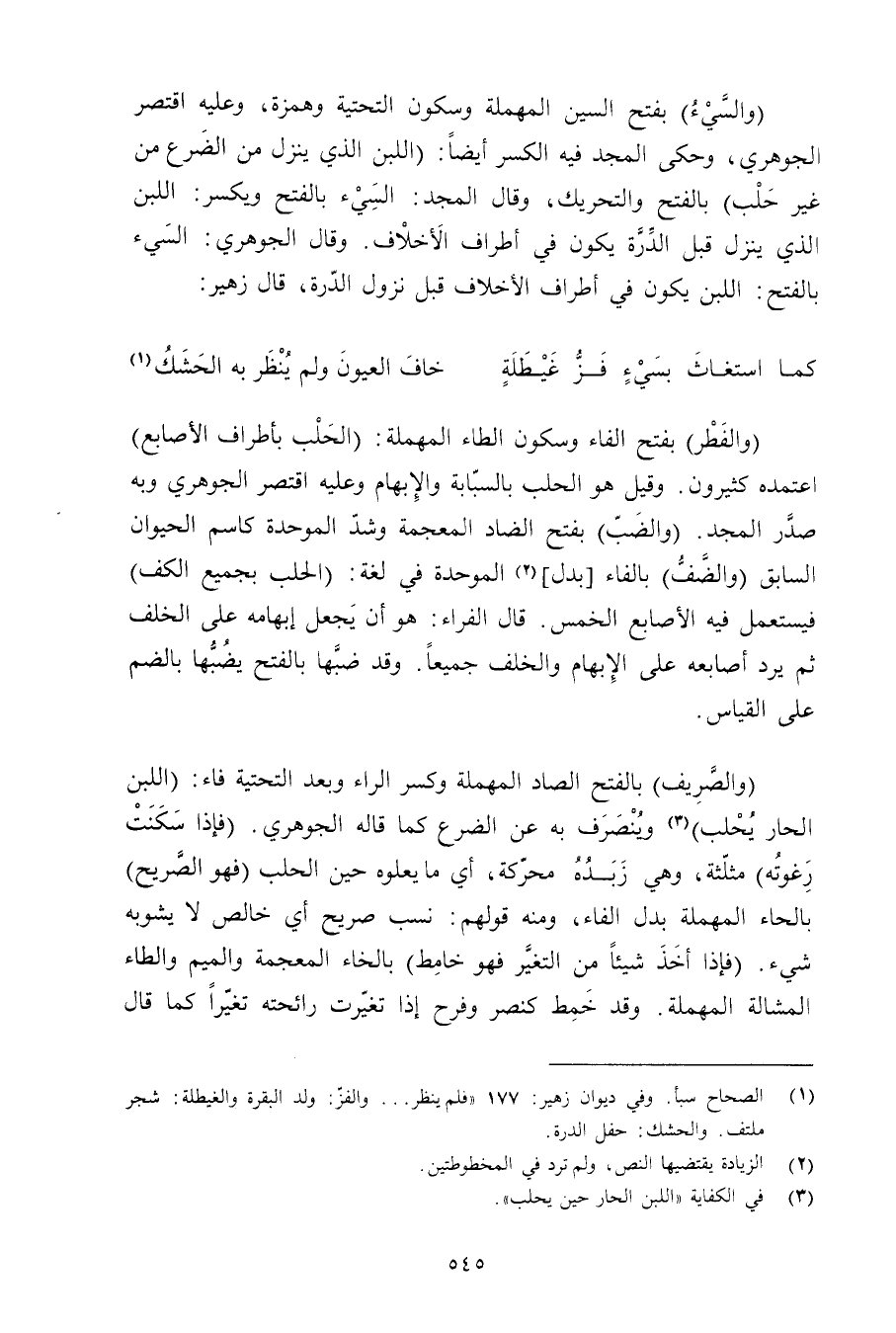 (والسيء) بفتح السين المهملة وسكون التحتية وهمزة, وعليه اقتصر الجوهري, وحكى المجد فيه الكسر أيضًا: (اللبن الذي ينزل من الضرع من غير حلب) بالفتح والتحريك, وقال المجد: السيء بالفتح ويكسر: اللبن الذي ينزل قبل الدرة يكون في أطراف الأخلاف. وقال الجوهري: السيء بالفتح: اللبن يكون في أطراف الأخلاف قبل نزول الدرة, قال زهير: