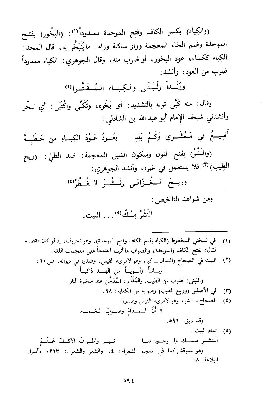 يقال: منه كبى ثوبه بالتشديد: أي بخره, وتكبى واكتبى: أي تبخر وأنشدني شيخنا الإمام أبو عبد الله بن الشاذلي:
