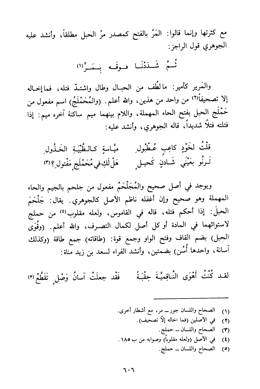 مع كثرتها وإنما قالوا: المر بالفتح كالمصدر مر الحبل مطلقًا, وأنشد عليه الجوهري قول الراجز: