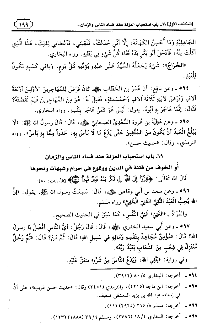 69 - باب استحباب العزلة عند فساد الناس والزمان أَو الخوف من فتنة في الدين ووقوع في حرام وشبهات ونحوها