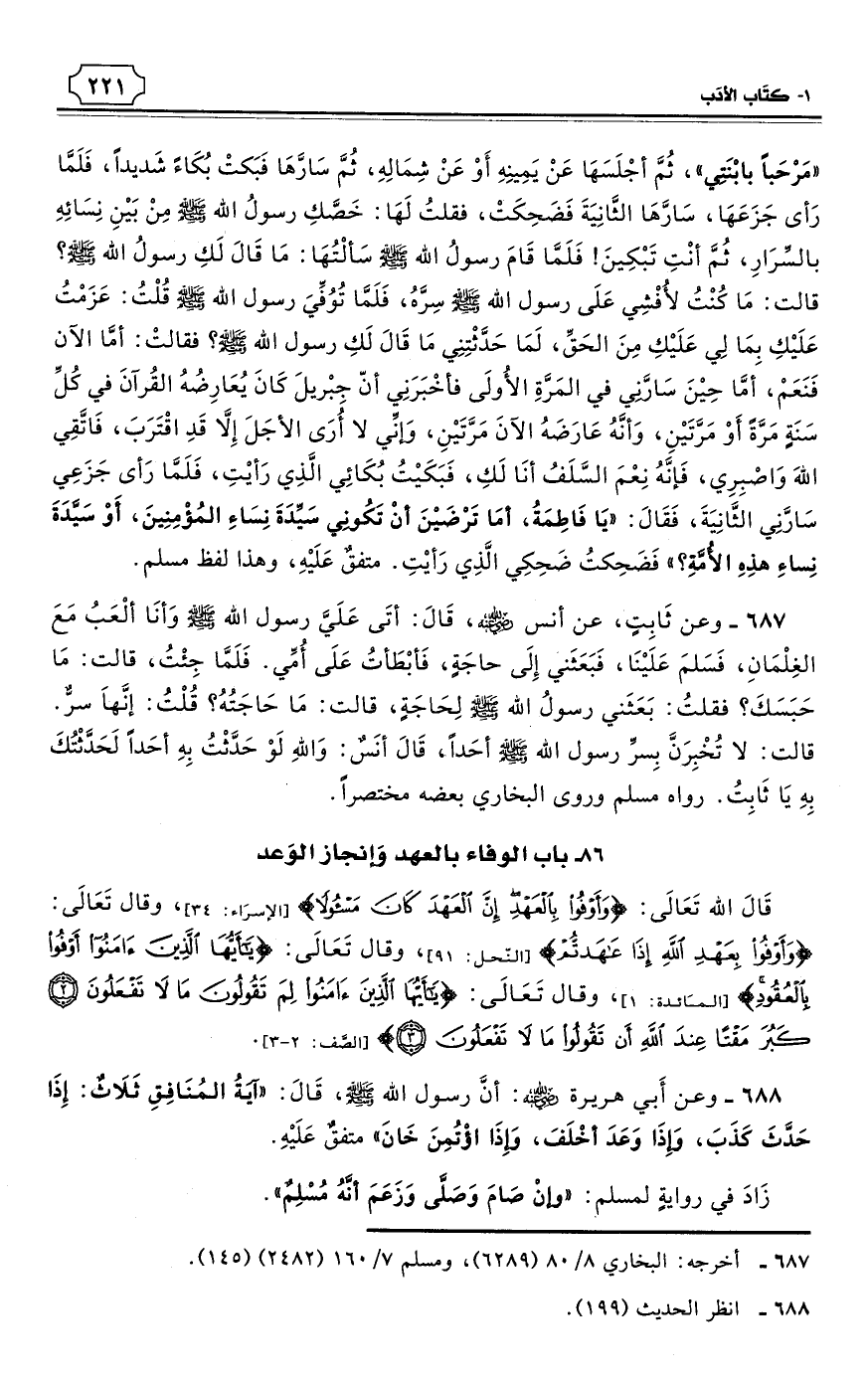 86 - باب الوفاء بالعهد وَإنجاز الوَعد