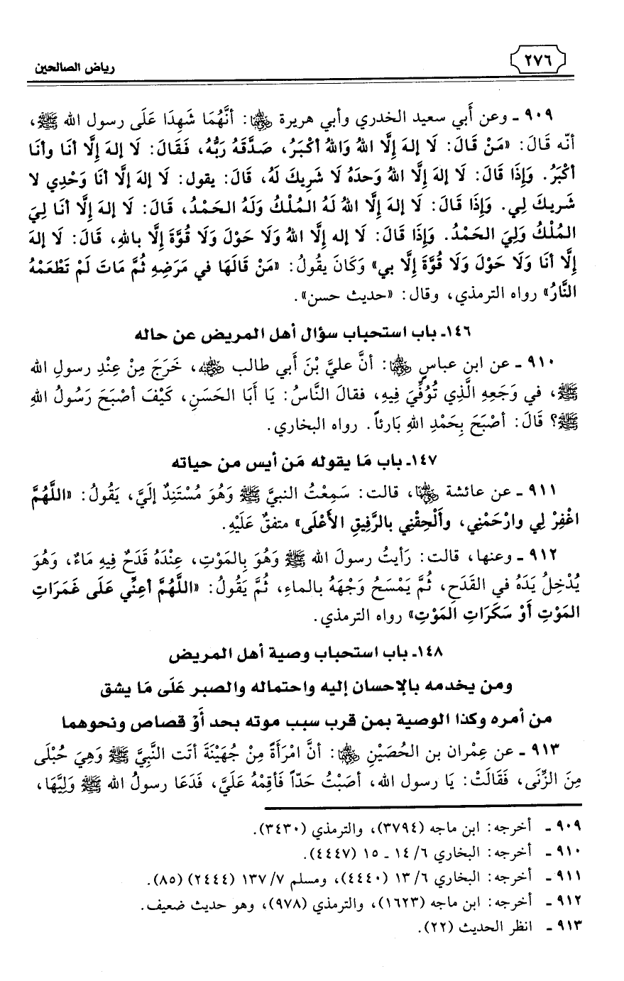 148 - باب استحباب وصية أهل المريض ومن يخدمه بالإحسان إليه واحتماله والصبر عَلَى مَا يشق من أمره وكذا الوصية بمن قرب سبب موته بحد أَوْ قصاص ونحوهما