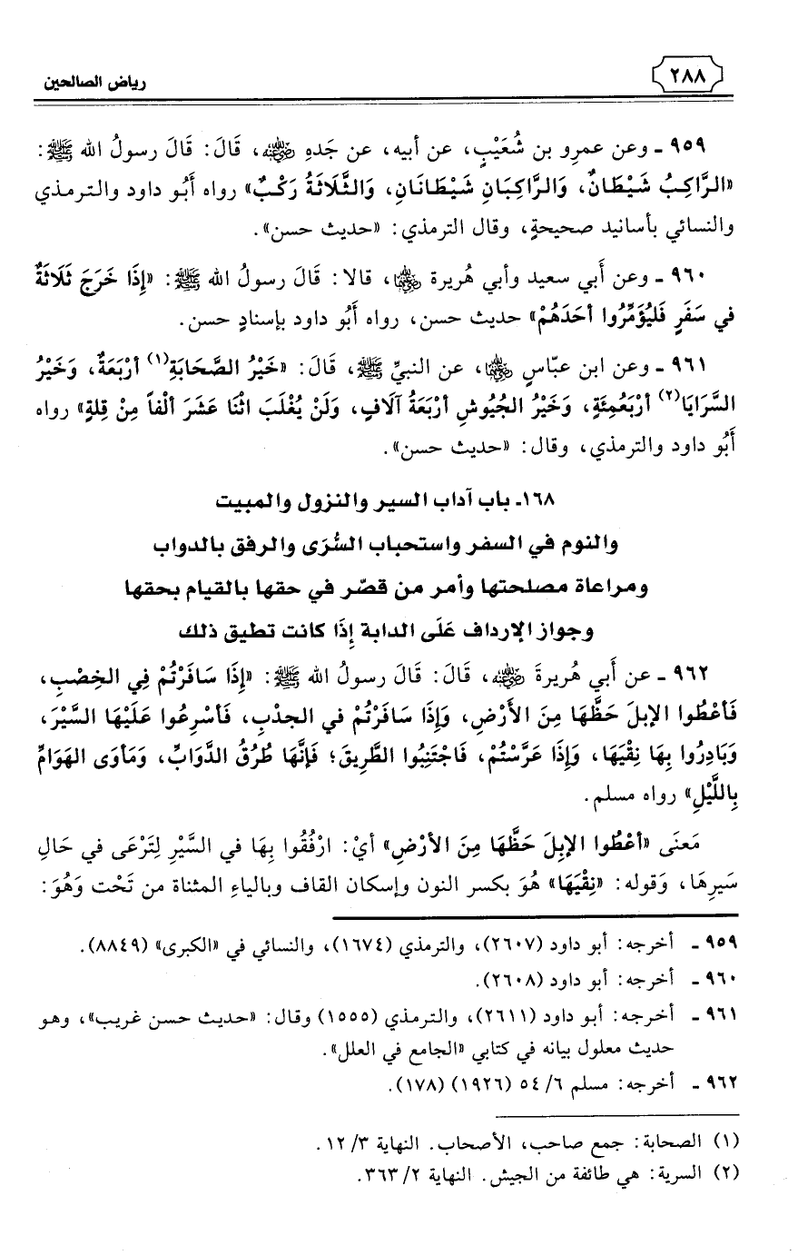 168 - باب آداب السير والنزول والمبيت والنوم في السفر واستحباب السُّرَى والرفق بالدواب