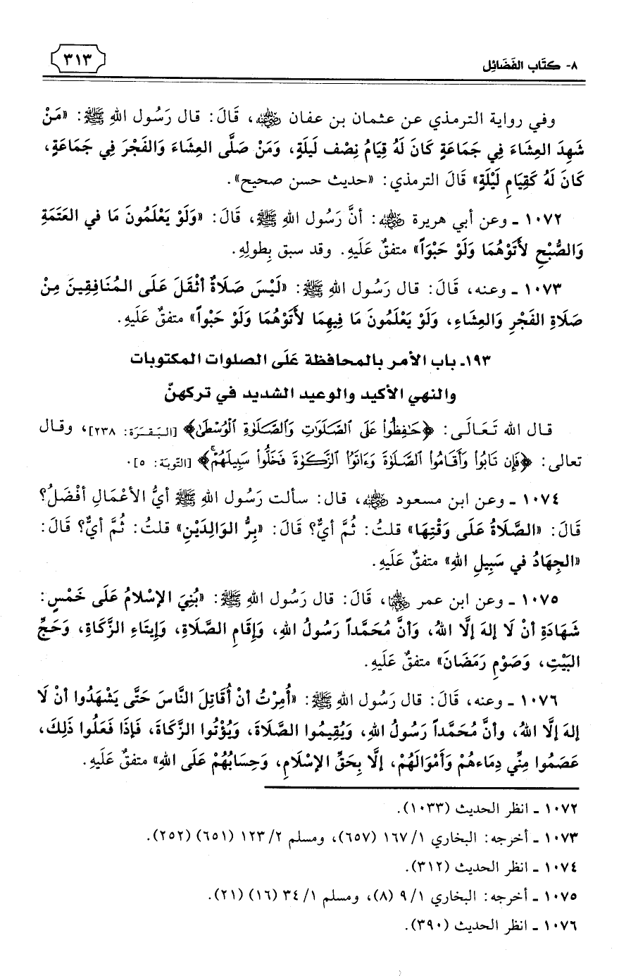 193 - باب الأمر بالمحافظة عَلَى الصلوات المكتوبات والنهي الأكيد والوعيد الشديد في تركهنّ