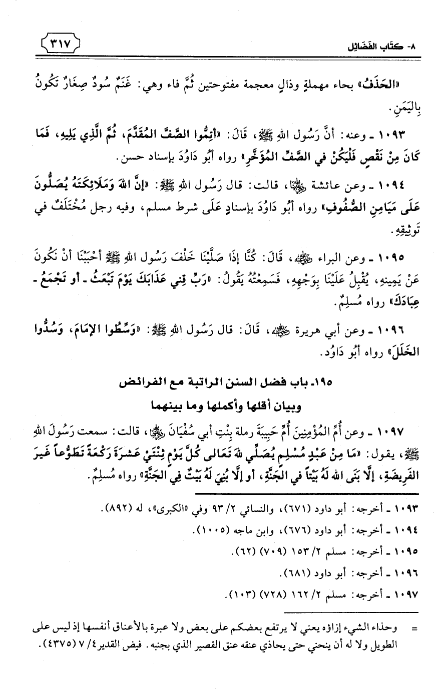 195 - باب فضل السنن الراتبة مع الفرائض وبيان أقلها وأكملها وما بينهما
