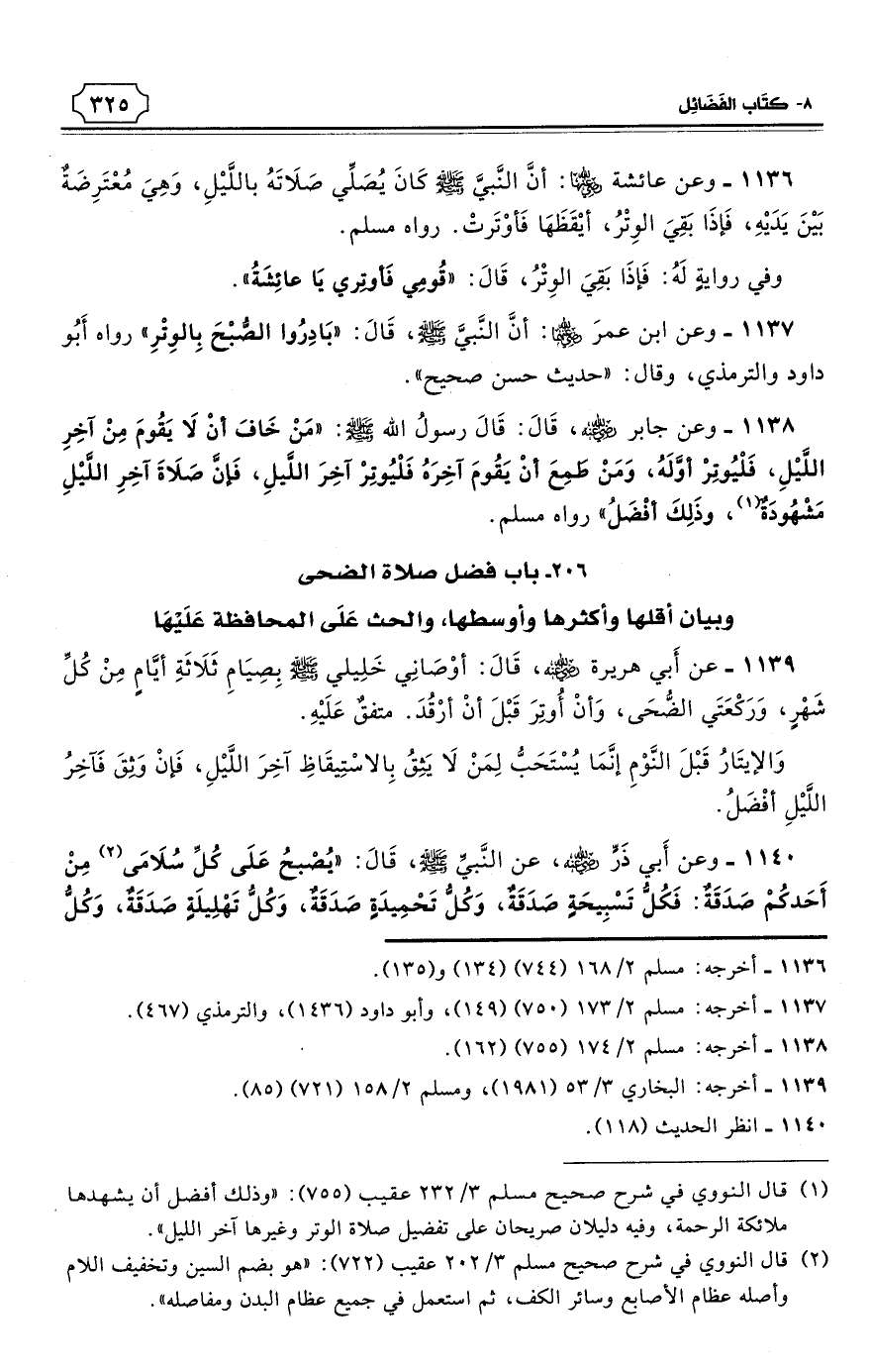 206 - باب فضل صلاة الضحى وبيان أقلها وأكثرها وأوسطها، والحث عَلَى المحافظة عَلَيْهَا