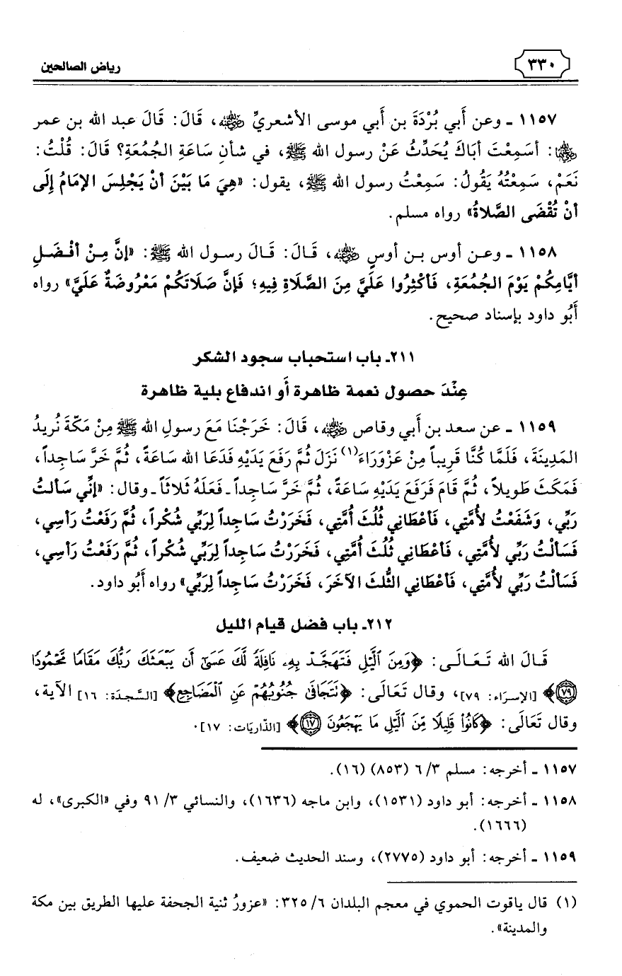 1158 - وعن أوس بن أوسٍ - رضي الله عنه - قَالَ: قَالَ رسول الله - صلى الله عليه وسلم: «إنَّ مِنْ أفْضَلِ أيَّامِكُمْ يَوْمَ الجُمُعَةِ، فَأكْثِرُوا عَلَيَّ مِنَ الصَّلاَةِ فِيهِ؛ فَإنَّ صَلاَتَكُمْ مَعْرُوضَةٌ عَلَيَّ». رواه أَبُو داود بإسناد صحيح. (¬1)