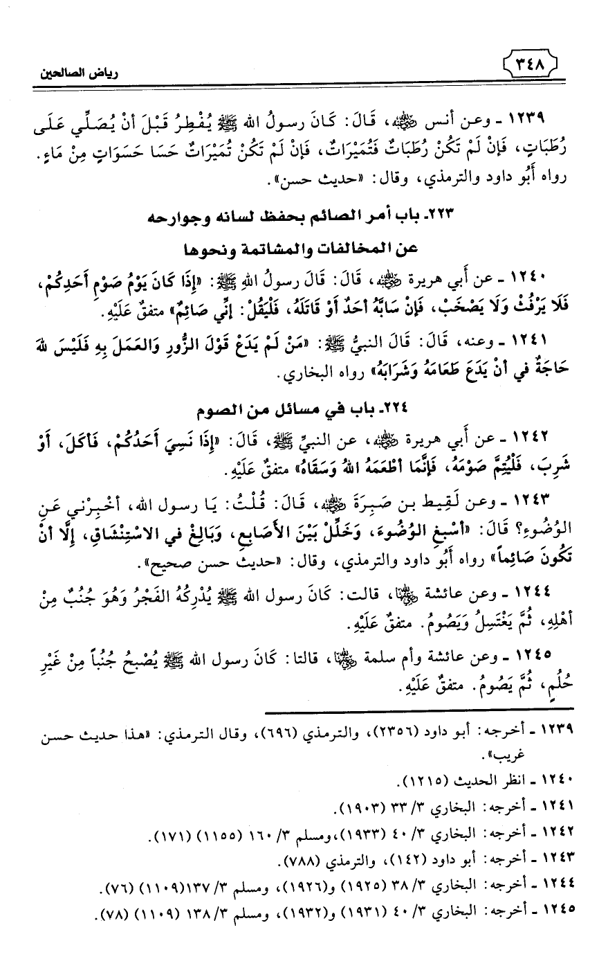 223 - باب أمر الصائم بحفظ لسانه وجوارحه عن المخالفات والمشاتمة ونحوها