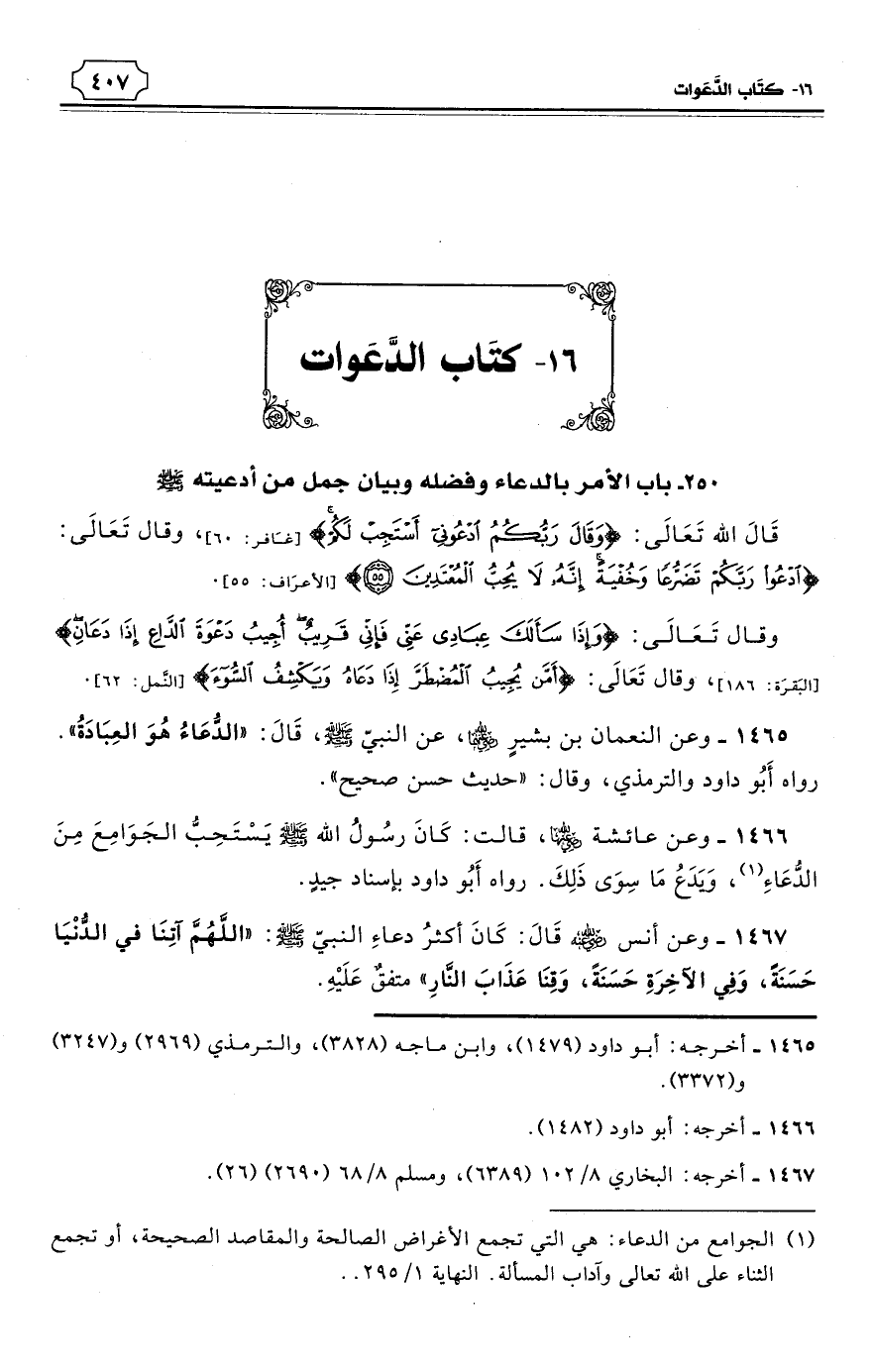 250 - باب الأمر بالدعاء وفضله وبيان جمل من أدعيته - صلى الله عليه وسلم.