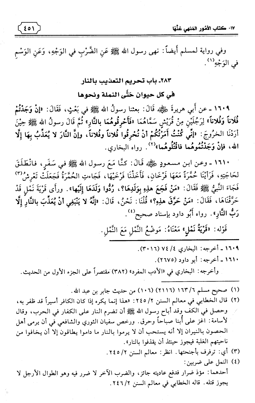 283 - باب تحريم التعذيب بالنار في كل حيوان حَتَّى النملة ونحوها