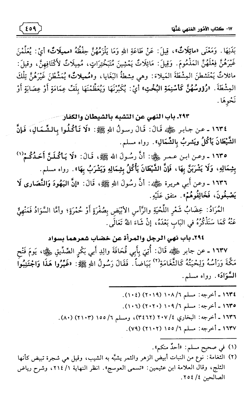 293 - باب النهي عن التشبه بالشيطان والكفار