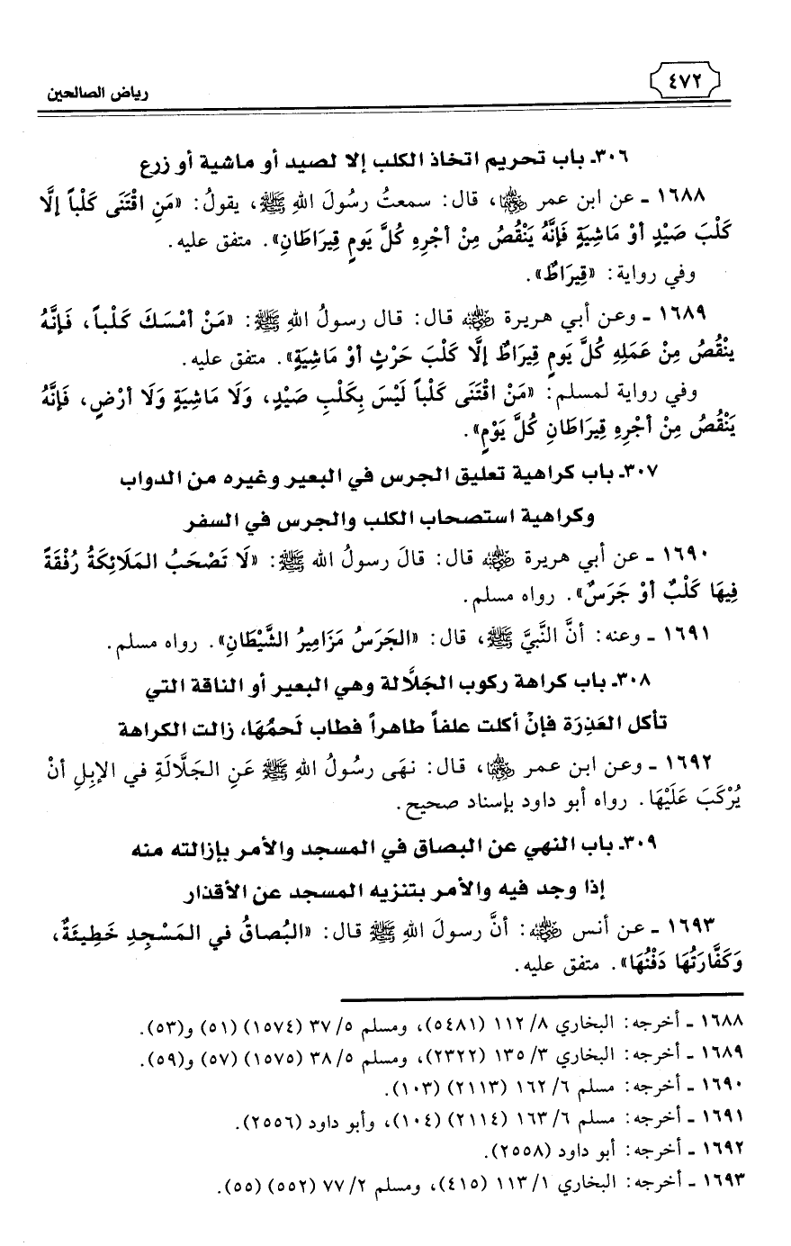 306 - باب تحريم اتخاذ الكلب إلا لصيد أو ماشية أو زرع