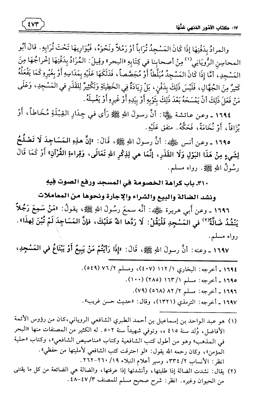 310 - باب كراهة الخصومة في المسجد ورفع الصوت فِيهِ ونشد الضالة والبيع والشراء والإجارة ونحوها من المعاملات