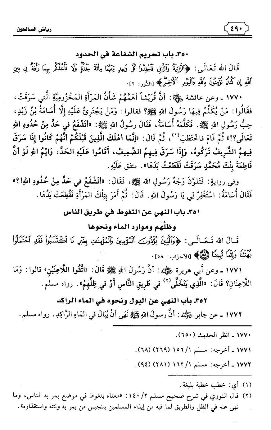 351 - باب النهي عن التغوط في طريق الناس وظلِّهم وموارد الماء ونحوها