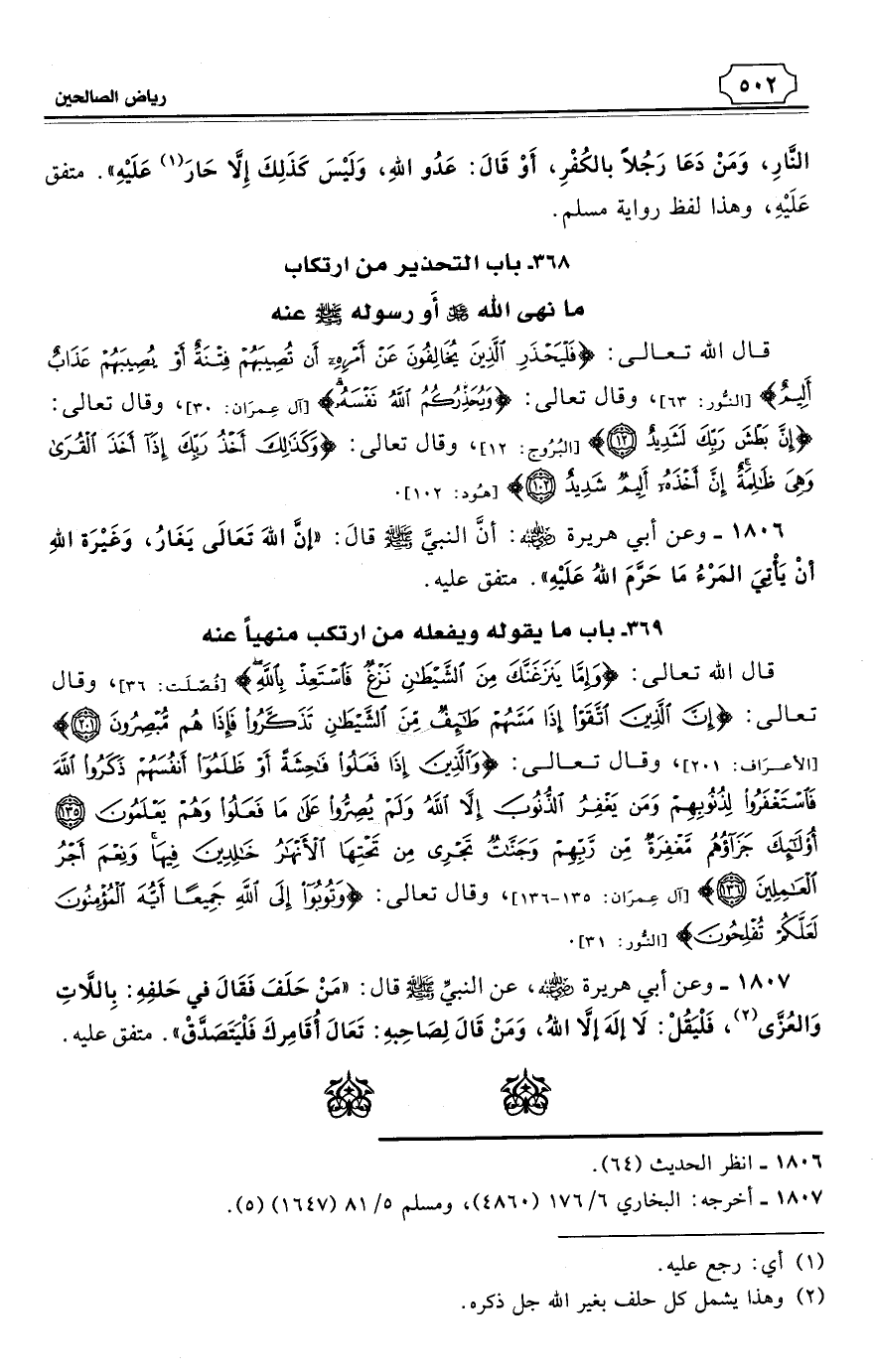 368 - باب التحذير من ارتكاب ما نهى الله - عز وجل - أَو رسوله - صلى الله عليه وسلم - عنه