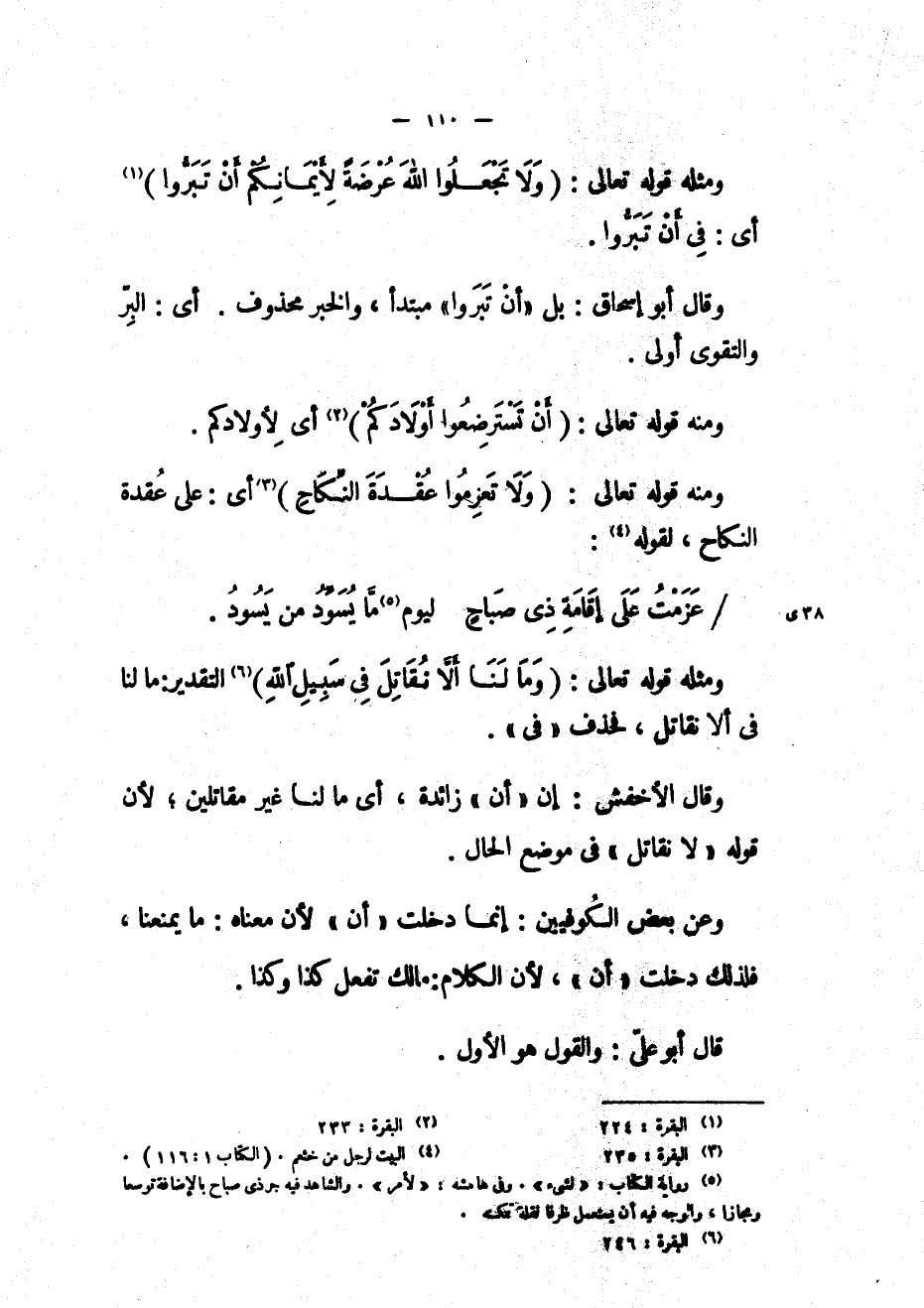 ومثله قوله تعالى: (وَلا تَجْعَلُوا اللَّهَ عُرْضَةً لِأَيْمانِكُمْ أَنْ تَبَرُّوا) «1» أي: في أن تبروا.
