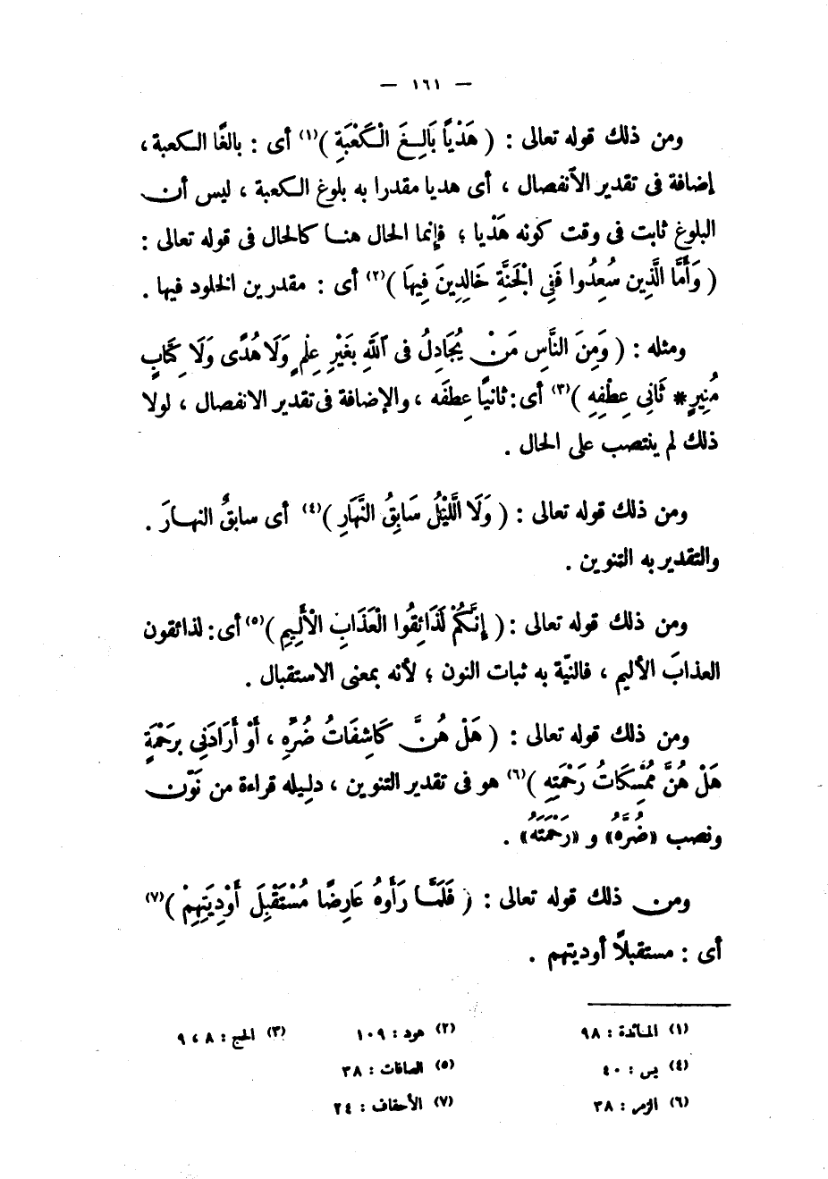 ومن ذلك قوله تعالى: (فَلَمَّا رَأَوْهُ عارِضاً مُسْتَقْبِلَ أَوْدِيَتِهِمْ) «7» أي: مستقبلا أوديتهم.
