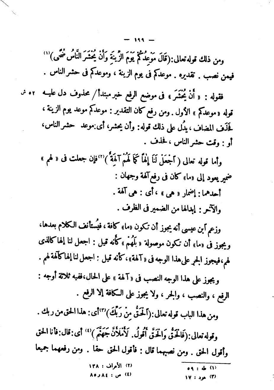 فقوله: «أن يحشر» في موضع الرفع خبر مبتدأ/ محذوف دل عليه قوله «موعدكم» الأول. ومن رفع كان التقدير: موعدكم موعد يوم الزينة، فحذف المضاف، يدل على ذلك قوله: وأن يحشر، أي: موعد حشر الناس، أو: وقت حشر الناس، فحذف.