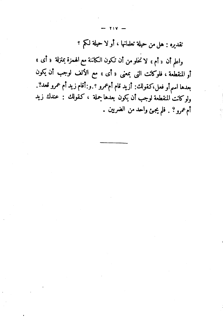 واعلم أن «أم» لا تخلو من أن تكون الكائنة مع الهمزة بمنزلة «أى» أو المنقطعة، فلو كانت التي بمعنى «أى» مع الألف لوجب أن يكون بعدها اسم أو فعل، كقولك: أزيد قام أم عمرو؟. و: أقام زيد أم عمرو قعد؟.