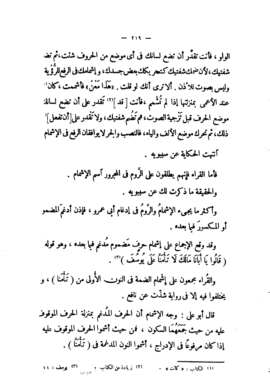 وقد وقع الإجماع على إشمام حرف مضموم مدغم فيما بعده، وهو قوله (قالُوا يا أَبانا ما لَكَ لا تَأْمَنَّا عَلى يُوسُفَ) «4» .