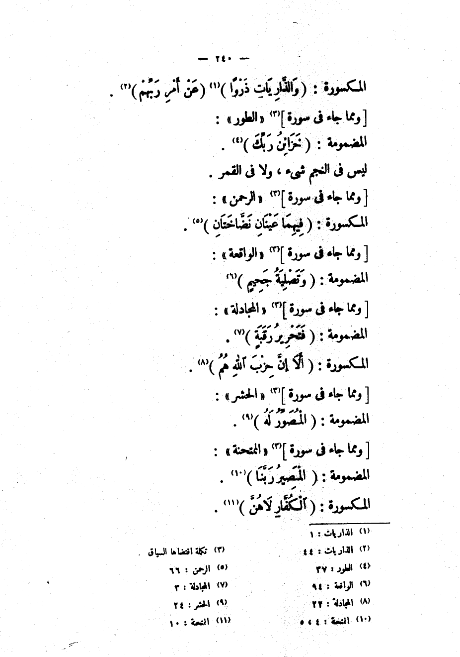 المضمومة: (وَتَصْلِيَةُ جَحِيمٍ) «8» [ومما جاء في سورة] «9» «المجادلة» :