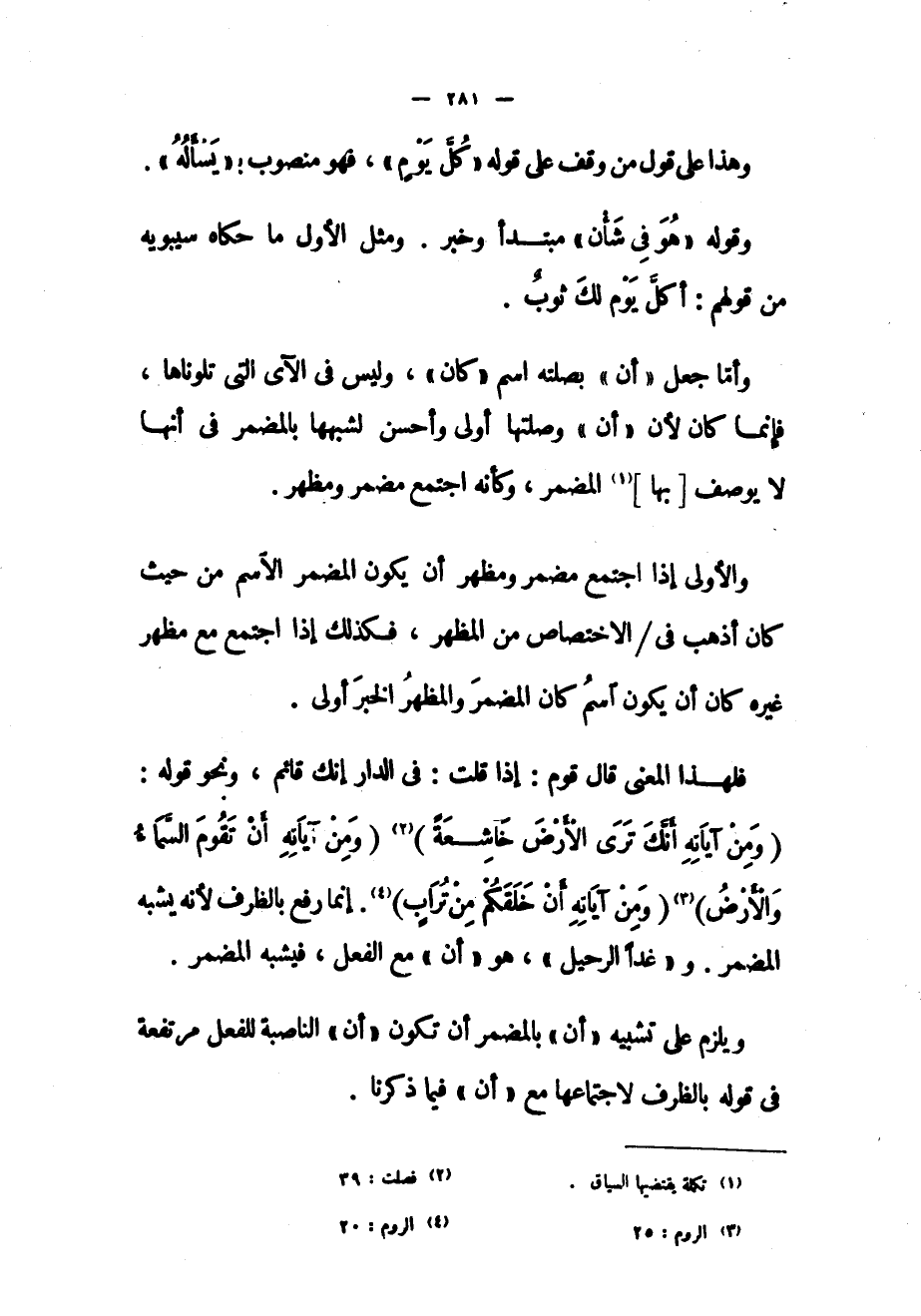 ويلزم على تشبيه «أن» بالمضمر أن تكون «أن» الناصبة للفعل مرتفعة في قوله بالظرف لاجتماعها مع «أن» فيما ذكرنا.