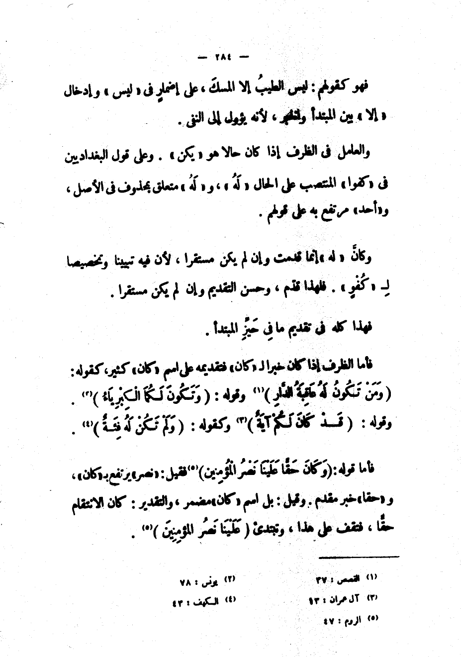 «5» فقيل: «نصر» يرتفع ب «كان» ، و «حقا» خبر مقدم. وقيل: بل اسم «كان» مضمر، والتقدير: كان الانتقام حقاً، فتقف على هذا، وتبتدئَ لَيْنا نَصْرُ الْمُؤْمِنِينَ)