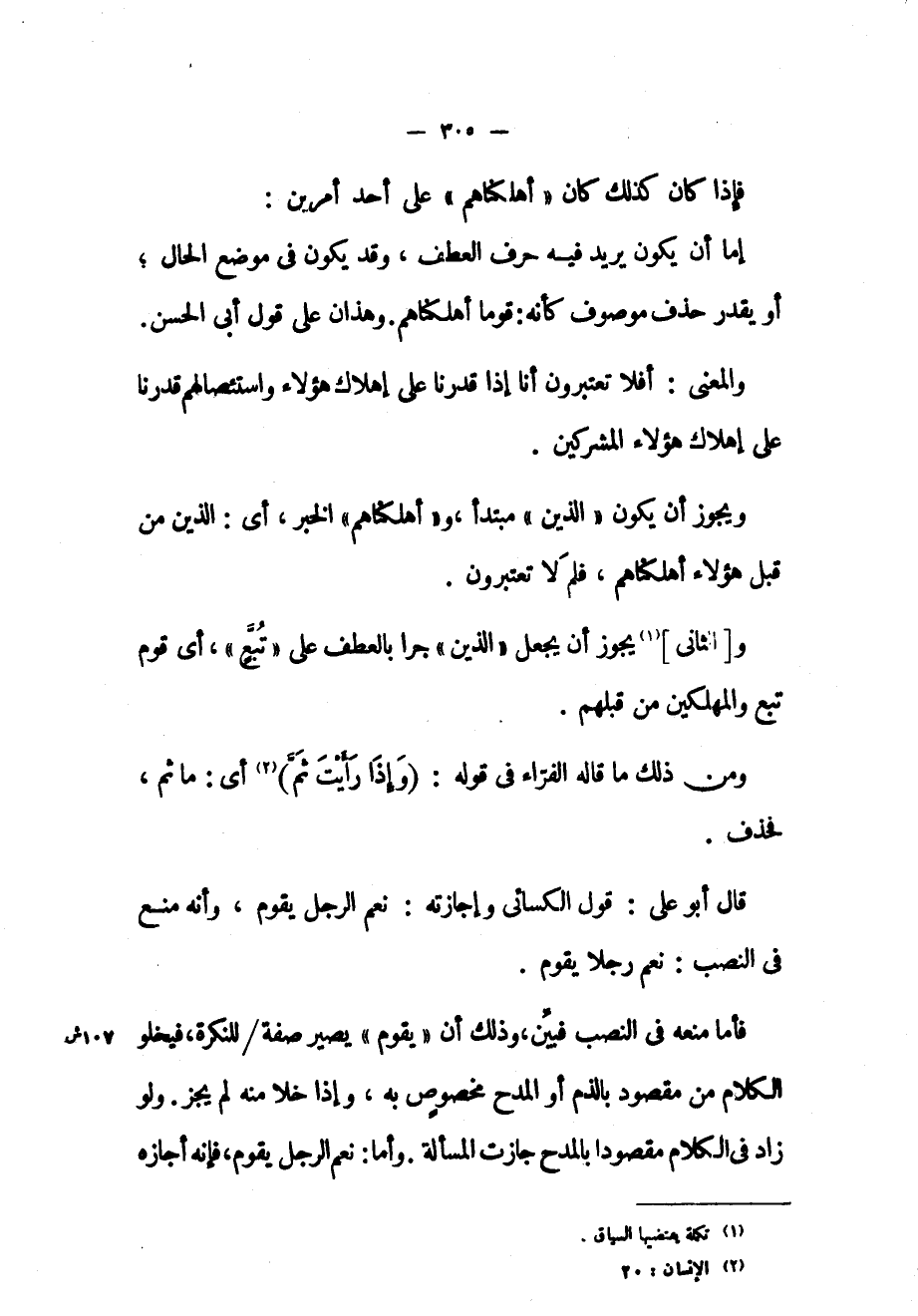 ومن ذلك ما قاله الفرّاء في قوله: (وَإِذا رَأَيْتَ ثَمَّ) «2» أي: ما ثم، فحذف.