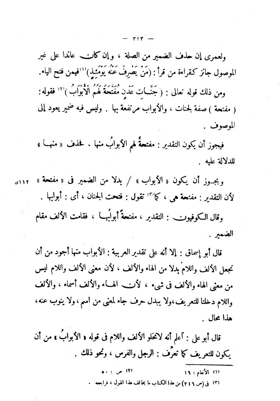 قال أبو علي: اعلم أنه لا تخلو الألف واللام في قوله «الأبواب» من أن يكون للتعريف كما تعرف: الرجل والفرس، ونحو ذلك.