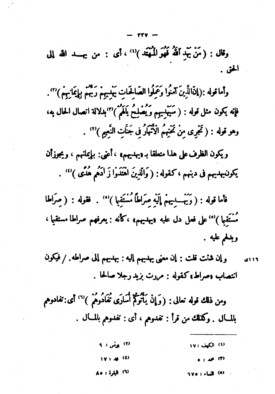 وإن شئت قلت: إن معنى يهديهم إليه: يهديهم إلى صراطه. / فيكون انتصاب «صراط» كقوله: مررت بزيد رجلاً صالحا.