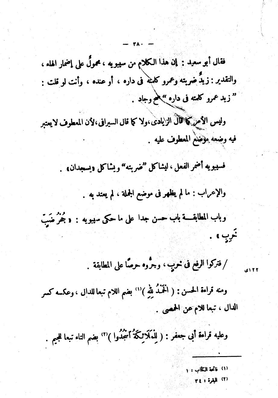 فقال أبو سعيد: إن هذا الكلام من سيبويه، محمول على إضمار الهاء، والتقدير: زيد ضربته وعمرو كلمته في داره، أو عنده، وأنت لو قلت: