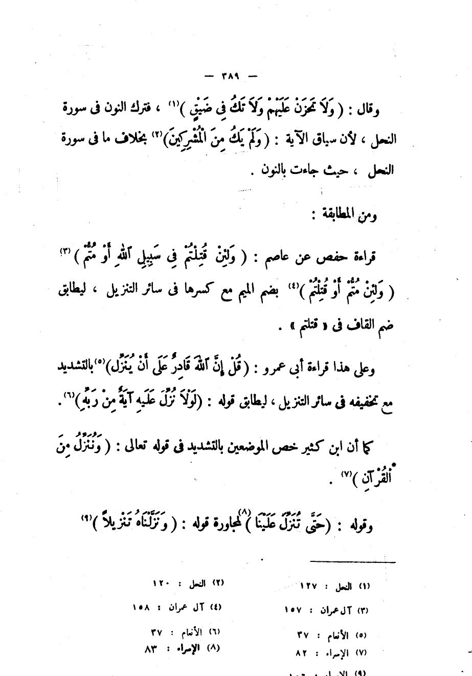 كما أن ابن كثير خص الموضعين بالتشديد في قوله تعالى: (وَنُنَزِّلُ مِنَ الْقُرْآنِ) «7» .