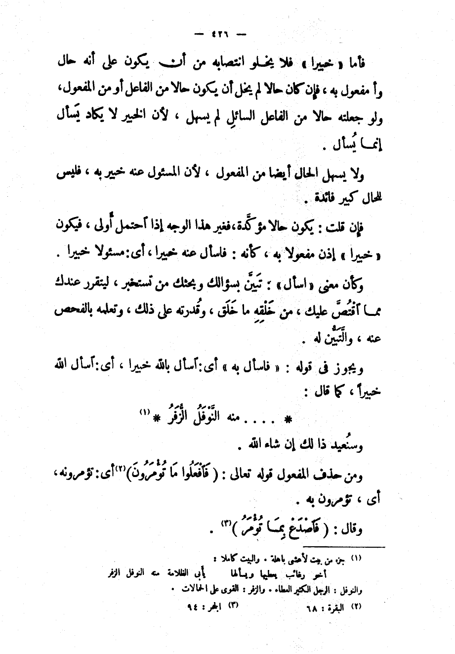 ومن حذف المفعول قوله تعالى: (فَافْعَلُوا ما تُؤْمَرُونَ) «2» أي: