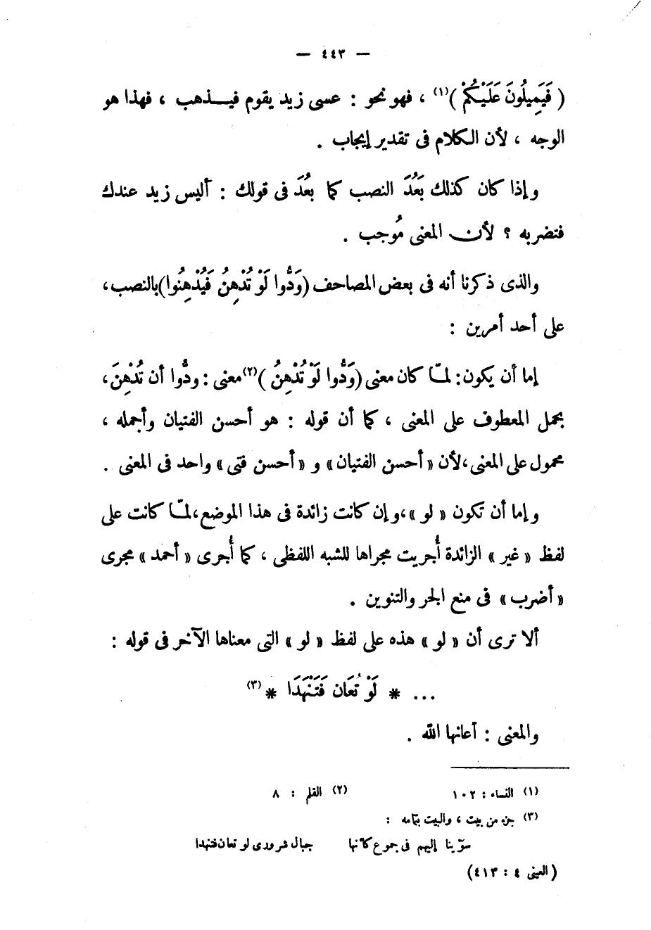 إما أن يكون: لما كان معنى (وَدُّوا لَوْ تُدْهِنُ) «3» معنى: ودوا أن تدهن، بحمل المعطوف على المعنى، كما أن قوله: هو أحسن الفتيان وأجمله، محمول على المعنى، لأن «أحسن الفتيان» و «أحسن فتى» واحد في المعنى.