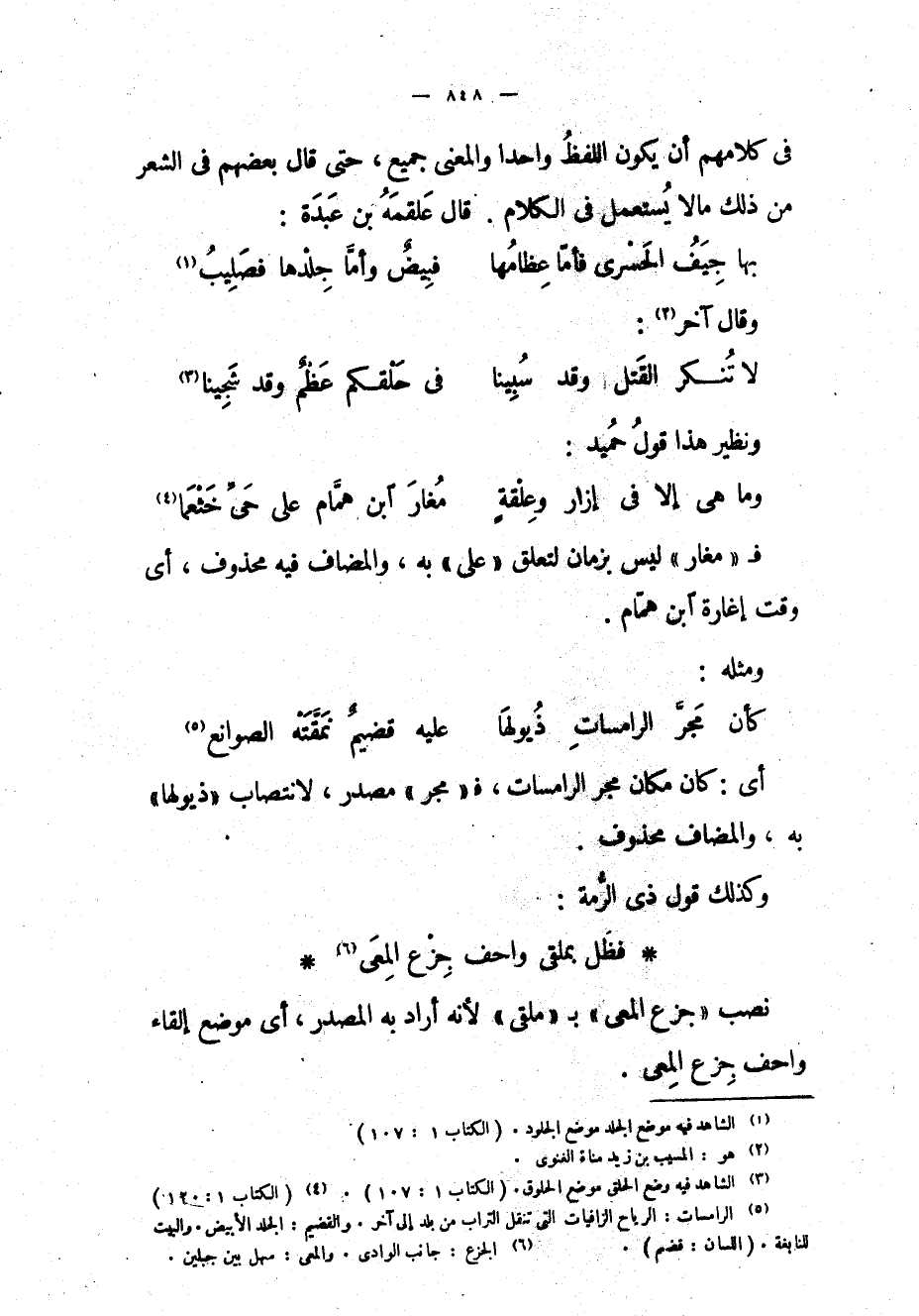 (3) الشاهد فيه وضع الحلق موضع الحلوق. (الكتاب 1: 107) .