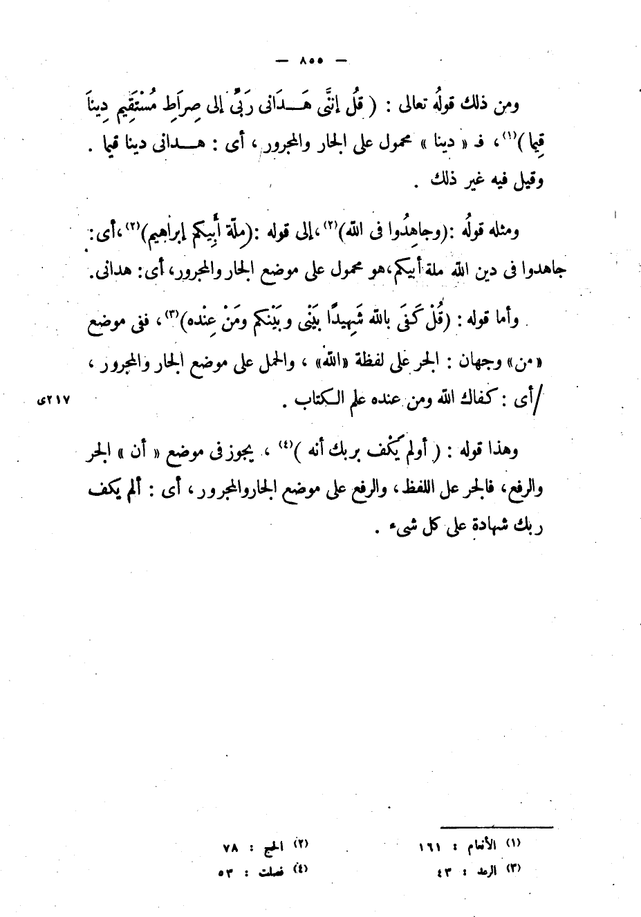 ومن ذلك قوله تعالى: (قُلْ إِنَّنِي هَدانِي رَبِّي إِلى صِراطٍ مُسْتَقِيمٍ دِيناً قِيَماً) «2» ، ف «دينا» محمول على الجار والمجرور، أي: هدانى دينا قيما.