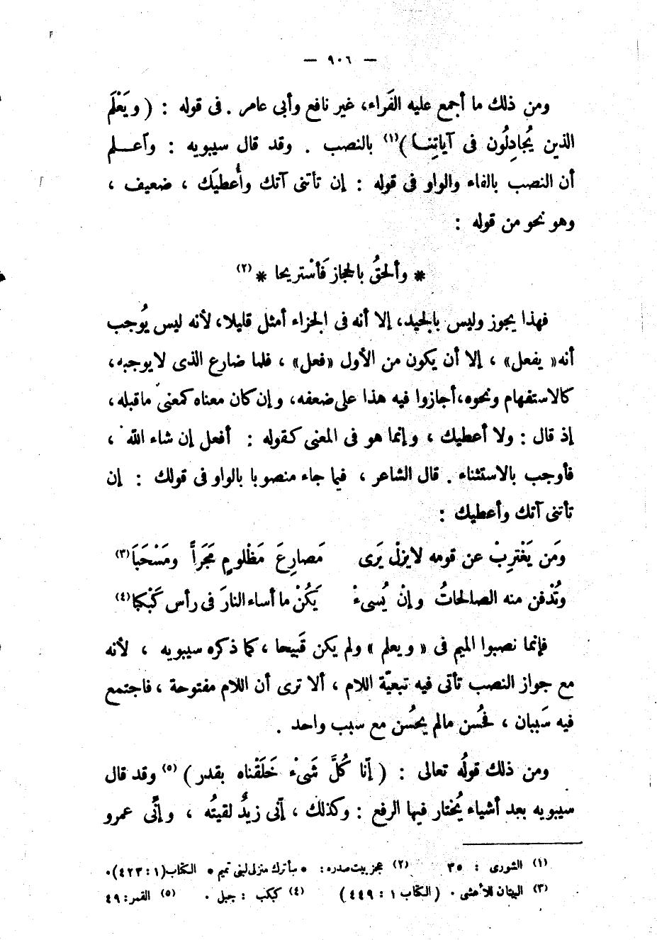 ومن ذلك قوله تعالى: (إِنَّا كُلَّ شَيْءٍ خَلَقْناهُ بِقَدَرٍ) «5» وقد قال سيبويه بعد أشياء يختار فيها الرفع: وكذلك، إني زيد لقيته، وإنّى عمرو