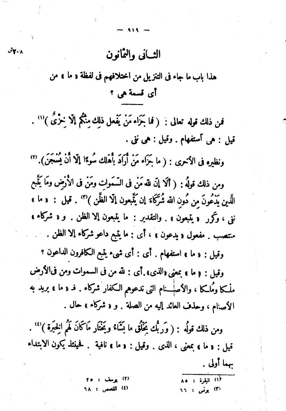 هذا باب ما جاء في التنزيل من اختلافهم في لفظة «ما» من أي قسمة هي؟