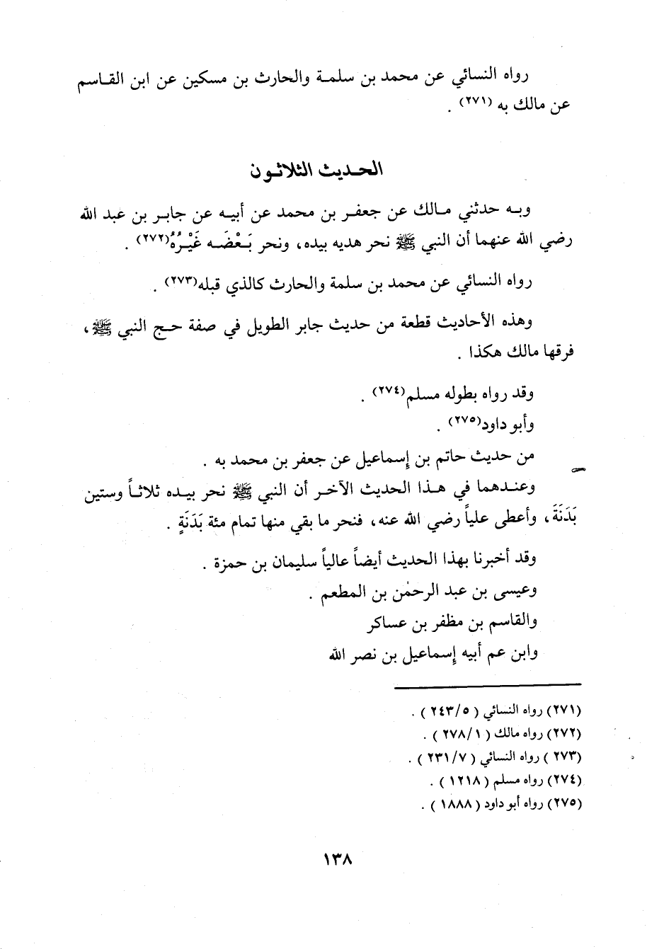 وَهَذِهِ الأَحَادِيثُ قِطْعَةٌ مِنْ حَدِيثِ جَابِرٍ الطَّوِيلِ فِي صِفَةِ حَجِّ النَّبِيِّ صَلَّى اللَّهُ عَلَيْهِ وَسَلَّمَ، فَرَّقَهَا مَالِكٌ هَكَذَا.