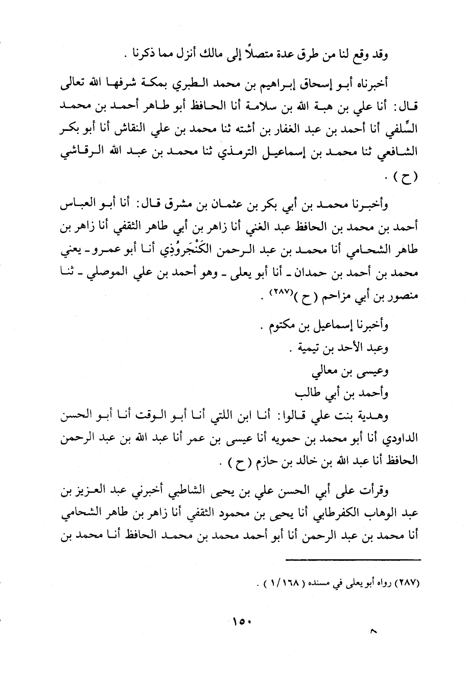 أَخْبَرَنَاهُ أَبُو إِسْحَاقَ إِبْرَاهِيمُ بْنُ مُحَمَّدٍ الطَّبَرِيُّ بِمَكَّةَ شَرَّفَهَا اللَّهُ تَعَالَى , قَالَ: أنا عَلِيُّ بْنُ هِبَةِ بْنِ سَلامَةَ، أنا الْحَافِظُ أَبُو طَاهِرٍ أَحْمَدُ بْنُ مُحَمَّدٍ السِّلَفِيُّ، أنا أَحْمَدُ بْنُ عَبْدِ الْغَفَّارِ بْنِ أَشْتَةَ، ثنا مُحَمَّدُ بْنُ عَلِيٍّ النَّقَّاشُ، أنا أَبُو بَكْرٍ الشَّافِعِيُّ، ثنا مُحَمَّدُ بْنُ إِسْمَاعِيلَ التِّرْمِذِيُّ، ثنا مُحَمَّدُ بْنُ عَبْدِ اللَّهِ الرَّقَاشِيُّ.