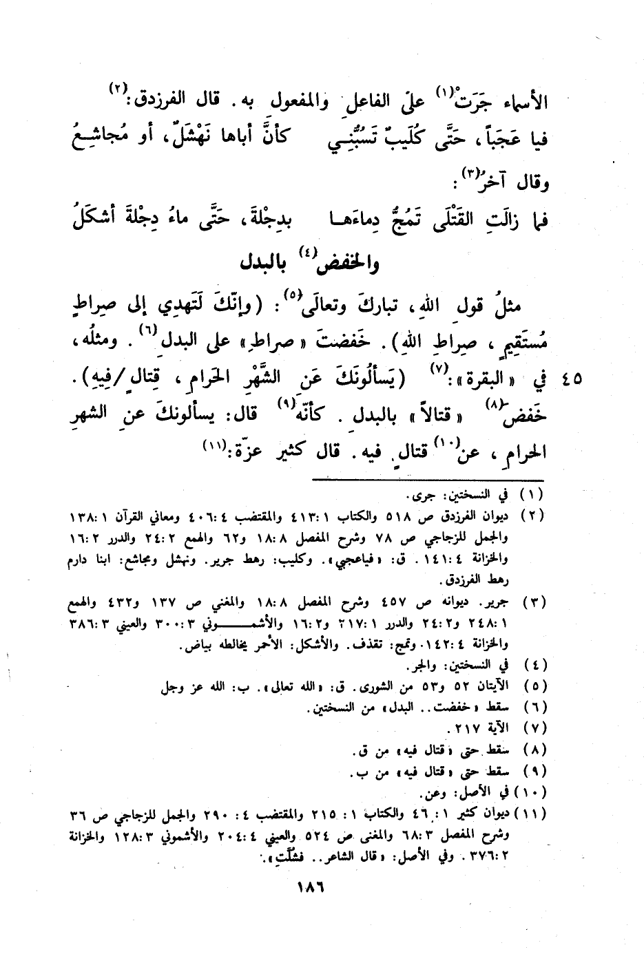 مثل قول الله تبارك وتعالى ( وإنك لتهدي إلى صراط مستقيم صراط الله ) خفضت صراط على البدل ومثله في البقرة ( يسألونك عن